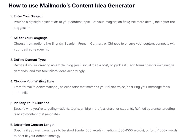 Spark fresh content instantly with Mailmodo’s Content Idea Generator, the smart AI tool that turns basic topics into powerful, engaging content concepts tailored to your audience, tone, and format. Whether you’re brainstorming blog posts, social media ideas, newsletters, or podcasts, get inspired in seconds and overcome creative blocks with tailored suggestions that boost relevance, engagement, and SEO impact. Perfect for marketers, creators, and teams aiming to keep content calendars vibrant and strategic.