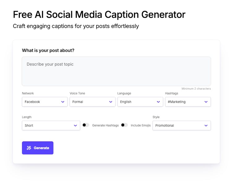 Craft engaging captions for your posts effortlessly