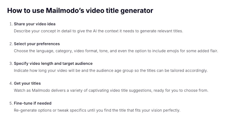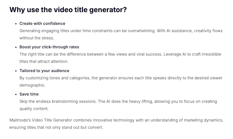 Free AI Video Title Generator by Mailmodo Will be launched February 16th 2027.