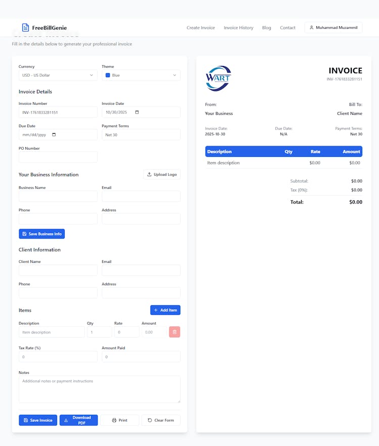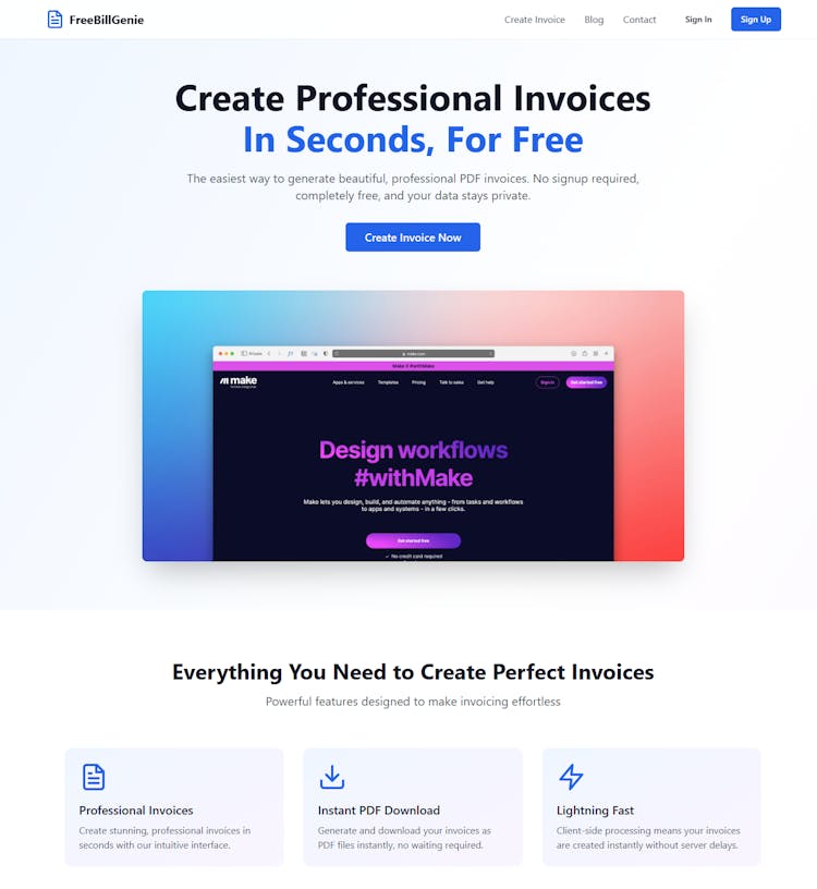 FreeBillGenie enables instant creation of professional PDF invoices directly in the browser with zero signup and unlimited usage, making invoicing accessible for every small business.