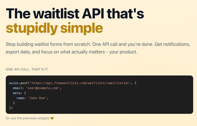 Free waitlist API and widgets for your landing page