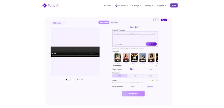 Funy AI lets users turn photos or text prompts into high-quality videos, generate digital art,