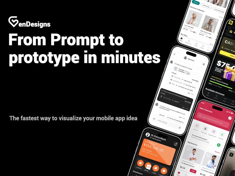 GenDesigns is the fastest path from app idea to visual prototype. Built for people who think in product requirements, not pixels, it uses AI trained specifically on mobile design patterns to generate professional screens from text descriptions.