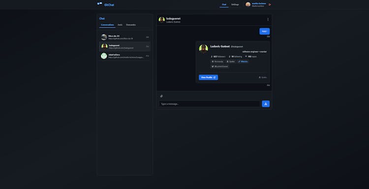 Connect and chat with your GitHub followers in real-time. Secure messaging platform for developers. Free for individuals, team features available. Authenticate with GitHub OAuth only.