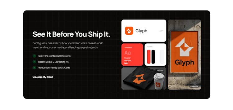 Glyph is an AI-powered brand identity generator for founders and developers. Type your brand name, pick a vibe, and get a production-ready brand in 30 seconds. Includes logo, color palette, typography, brand guidelines, and exports to Tailwind, CSS variables, and React components. Also features Brand Extract — paste any URL to extract a site's entire brand into documented guidelines