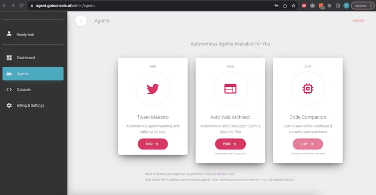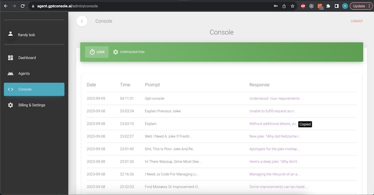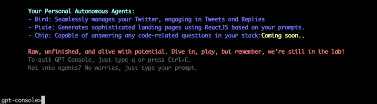 GPTConsole helps developers generate web/mobile applications and perform web automation through prompts. It offers an NPM package that developers can install on their local machines. We are launching a CLI with infinite context and two autonomous AI agents.
