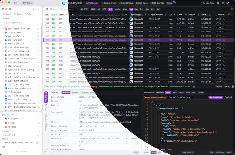 Most existing tools (Charles, Proxyman, HTTP Toolkit, etc.) suffer from two major pain points: