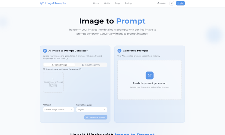 Free AI-powered image to prompt generator. Upload images and get detailed prompts for AI art generation with our advanced converter.
