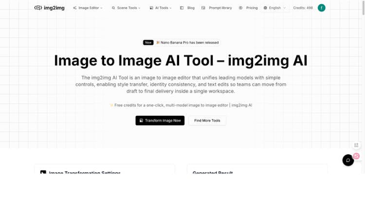 img2img AI Tool – image to image editor for style transfer, background removal, upscaling and face swap. Multi-model img2img (img 2 img) AI editor online.