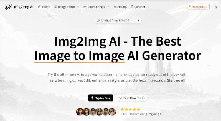 An all-in-one image to image AI generator (img2img). Upload a photo to edit, enhance, restyle, outpaint, and add one-click AI effects—no skills needed.