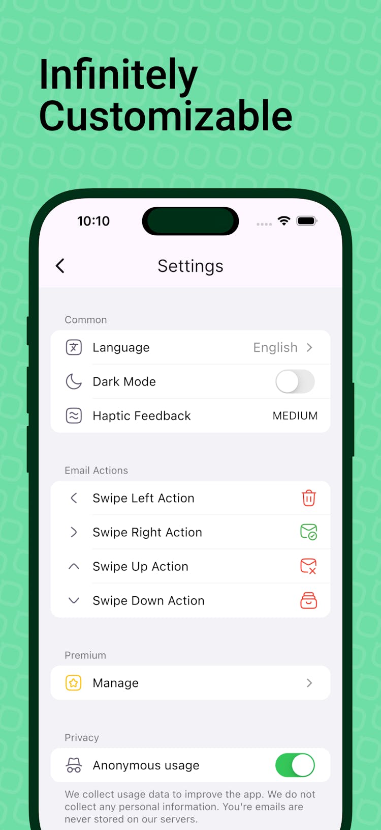 - **Swipe Up β¬οΈ** β Unsubscribe from annoying newsletters in one tap