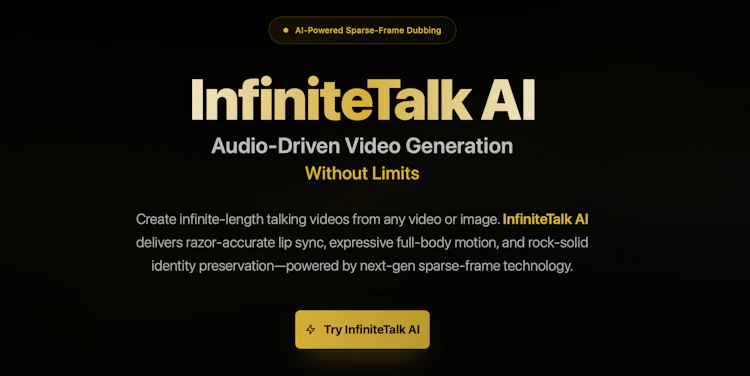 Discover InfiniteTalk AI at www.infinitetalk.net — an advanced platform for creating realistic, dynamic, and natural AI-powered voice conversations. Perfect for creators, educators, and storytellers looking to bring dialogue to life.