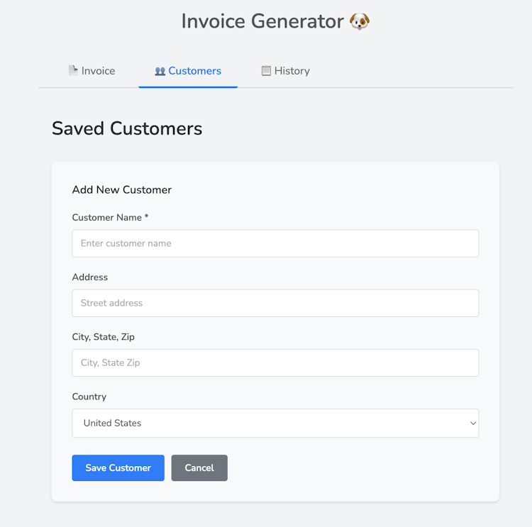 Quickly generate, send and save invoices - get paid today. Save customers and invoices for quick editing. No account required.