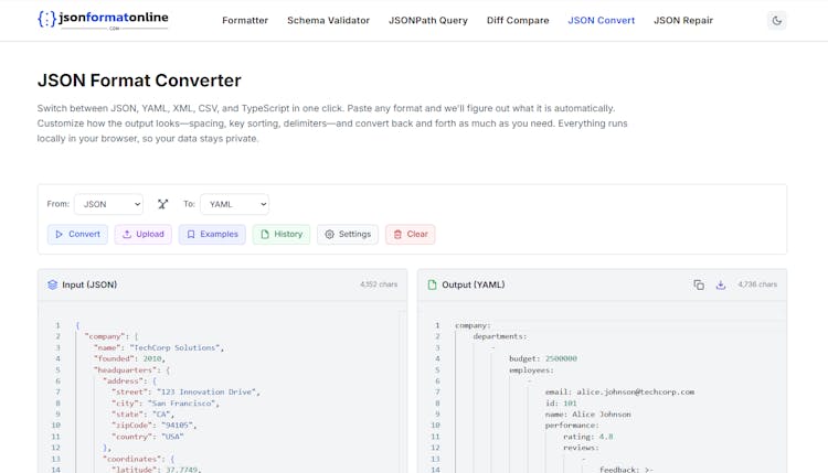 • JSONFormatOnline lets you clean, validate, and convert JSON in seconds while keeping your data private.