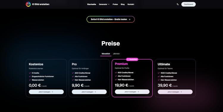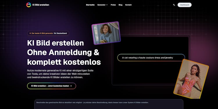 KI Bild Erstellen is an advanced AI image generation platform tailored specifically for German users, enabling anyone to create high-quality AI images without technical expertise. Leveraging cutting-edge AI technology optimized for the German market, the platform offers an intuitive interface, rapid image generation, and a variety of creative tools to bring users' visions to life. By simply entering a detailed text prompt and selecting a preferred style—such as realistic, comic, or abstract—users can generate stunning images in approximately 10 seconds. The platform provides a free trial with no registration required, alongside premium subscription plans for enhanced features and commercial use. With a focus on user-friendliness, speed, and privacy, KI Bild Erstellen stands out as a top choice for creating professional AI images in 2025.