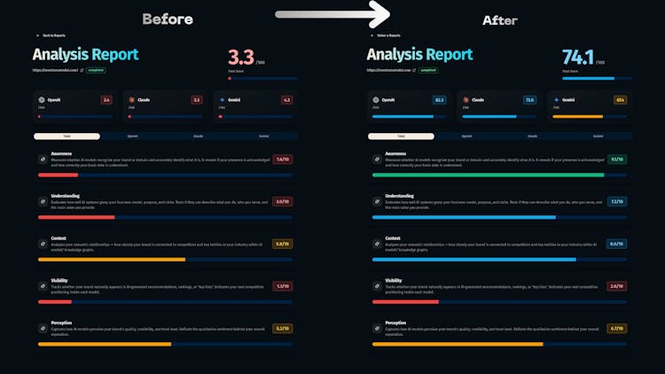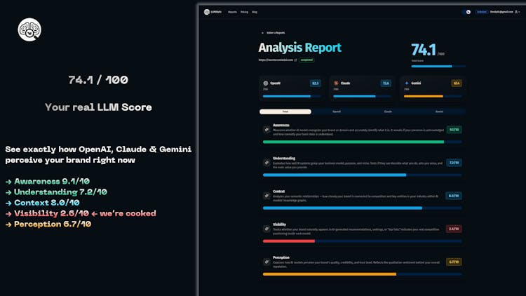 LLMOlytic measures how visible and well-understood your site or startup really is inside the major LLMs that are already replacing Google search.