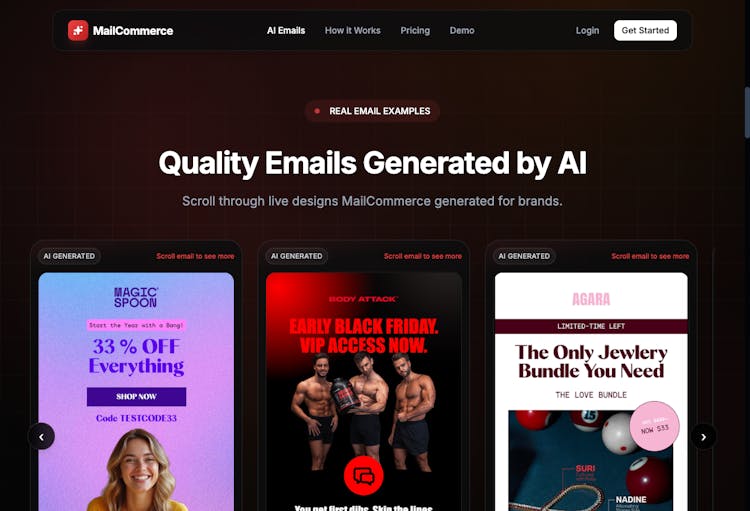 AI-powered email marketing platform for ecommerce. Paste any URL → AI analyzes your brand → generates a full month of email campaigns with strategy, copy, and design. Export to any ESP (Klaviyo, Mailchimp, etc.). Replaces 15+ hours of manual work per month.