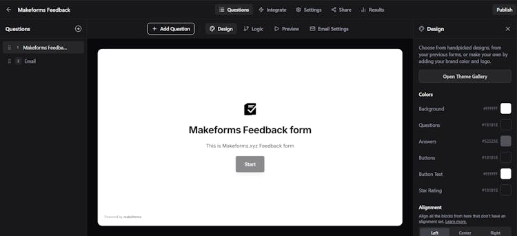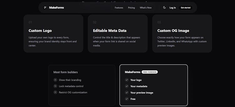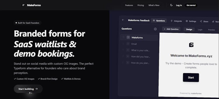 MakeForms helps founders create branded forms for SaaS waitlists, demo bookings, and feedback. Add your logo, control link previews, and customize OG images so your forms stand out on social media. A modern Typeform alternative built for brand-focused teams.