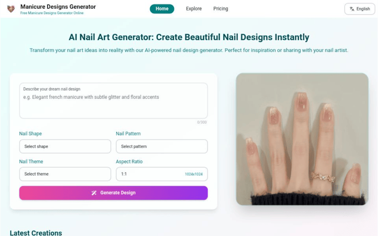 Manicure.life is a fun and easy-to-use AI tool that helps you visualize personalized nail art — all in your browser.