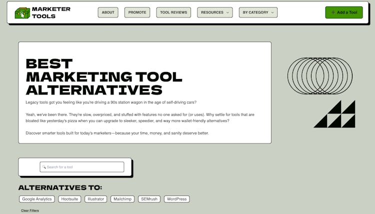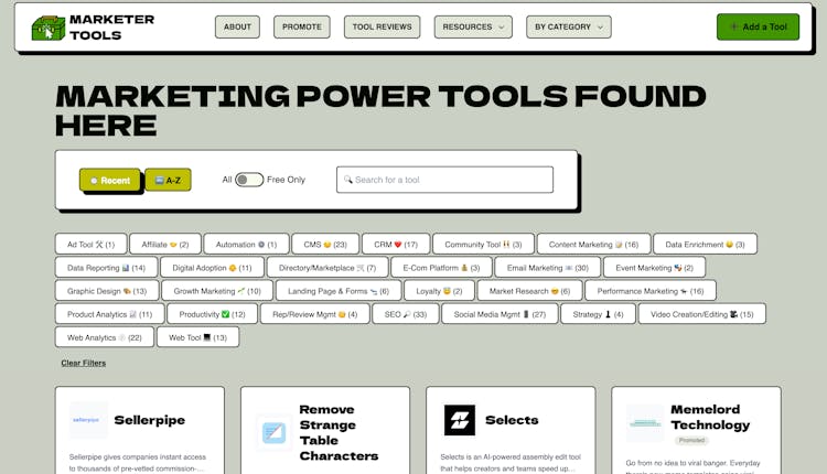 A curated directory that helps marketers quickly discover the best tools by category, use case, and budget — without the noise.