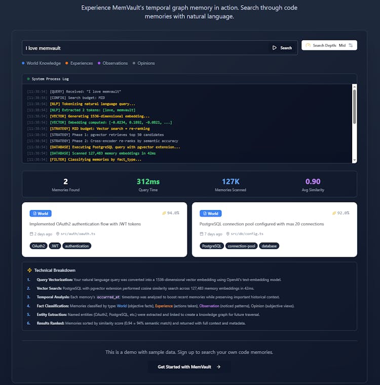 Standard RAG is timeless, which is a bug for coding agents. MemVault is an open-source memory engine that separates Facts (Code) from Experiences (Runtime Errors) and links them in a temporal graph. Now your agent knows why the build failed yesterday.