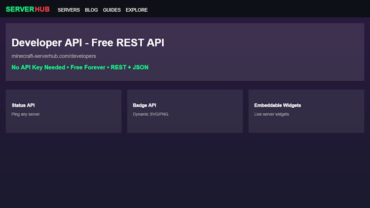 - Comprehensive documentation at minecraft-serverhub.com/developers