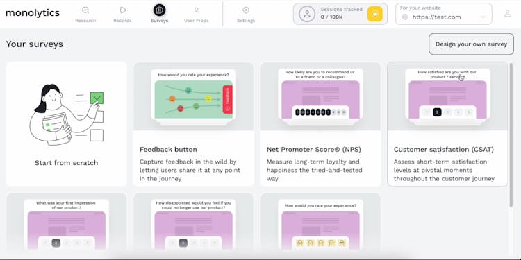 Collect user insights with surveys and session replays at key moments before conversion or churn.