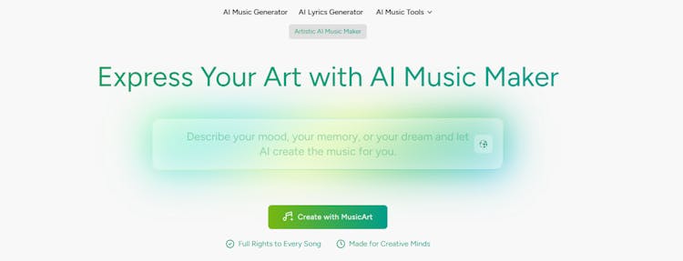 Experience the art of music creation with MusicArt's Free AI Music Maker. Compose emotional and original songs tht blend creativity with intelligence.