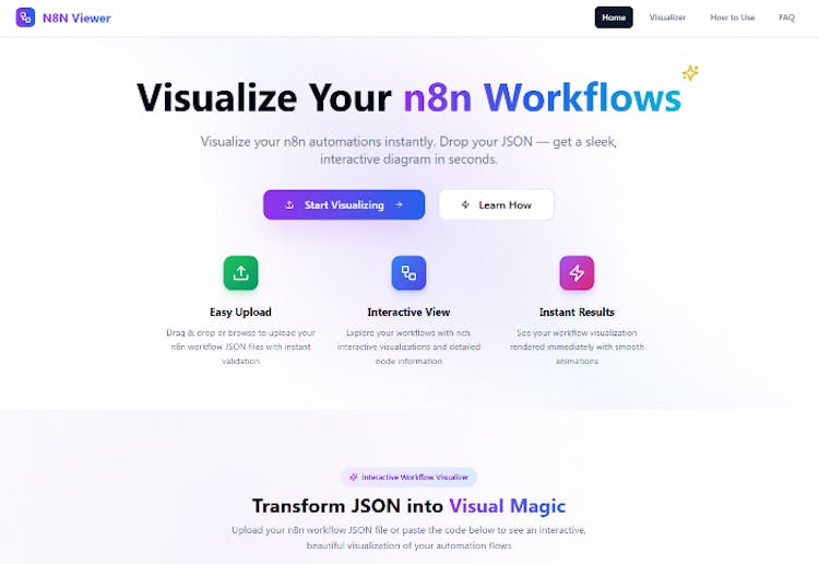 Visualize your n8n automations instantly. Drop your JSON — get a sleek, interactive diagram in seconds.