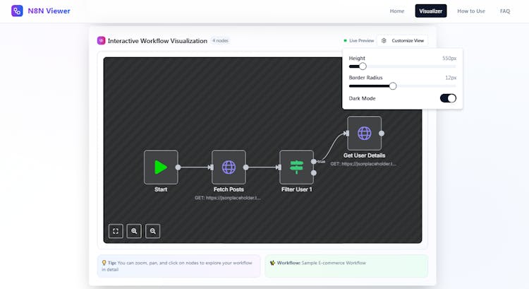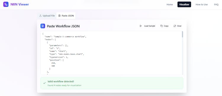 A simple, free tool to instantly visualize any n8n workflow JSON as a clean, interactive diagram. No signups or installs needed, just paste your JSON and see your workflow instantly!