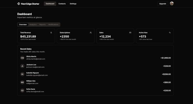 Next Edge Starter is a comprehensive starter kit for building and launching modern web applications. It comes with 3 different templates to choose from.