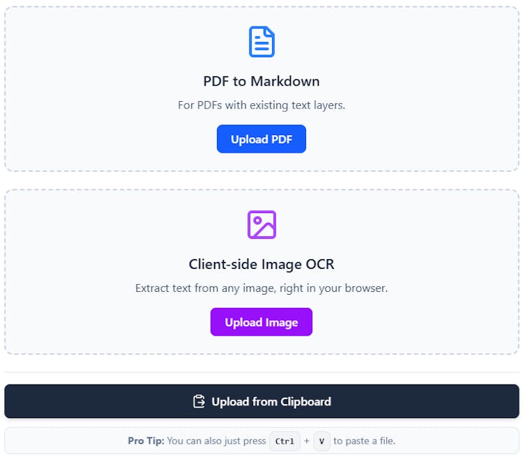 OCR Markdown is a powerful OCR solution that transforms scanned documents, image files, and non-selectable PDFs into editable Markdown. Its free, client-side OCR runs entirely in the browser on images, requiring no account and offering basic text extraction. The Premium model extends support to PDFs, delivers AI-enhanced text recognition with formatting, math, table, and image detection at 90–99% accuracy, securely stores uploads and results for document organization and full-text search, and lets you download results anytime, from anywhere. By eliminating manual transcription, OCR Markdown streamlines content workflows and makes unsearchable text instantly accessible and reusable.