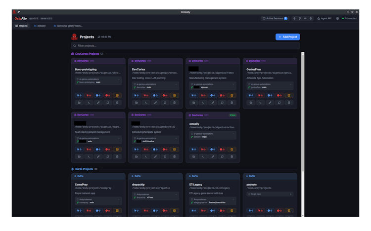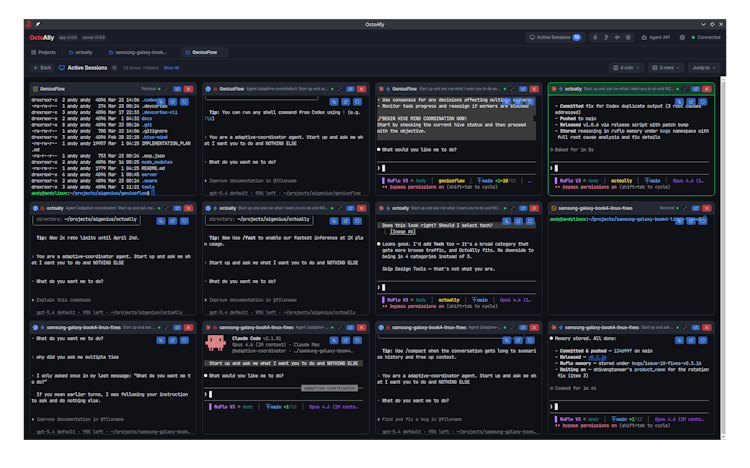 OctoAlly is a desktop and web dashboard for managing AI coding sessions across Claude Code and OpenAI Codex.