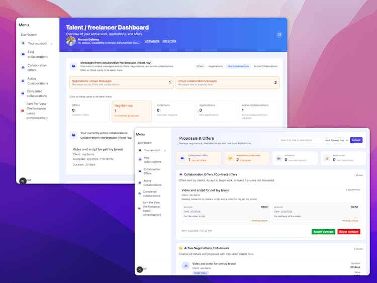 - Build Custom Marketing Teams: Clients can combine multiple freelancers to build a flexible, on-demand marketing team.