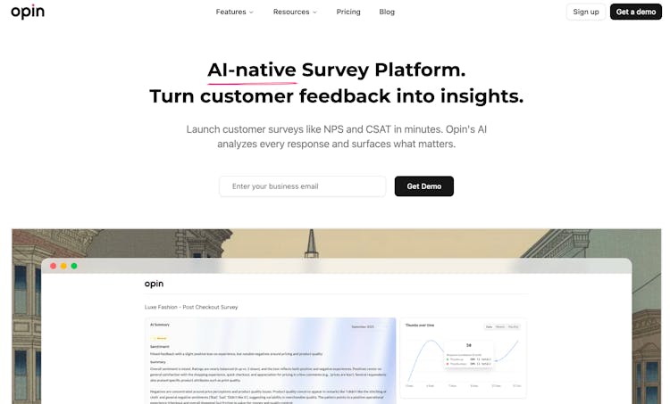 Opin gives developers an AI-native way to understand users. Instead of manually reading feedback or waiting on product teams, you can drop in our Web SDK (one script tag or npm install) and instantly capture user sentiment at the exact moment it matters, feature usage, errors, onboarding, upgrades, cancellations, and more.