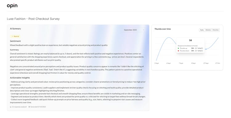 Once feedback is captured, Opin’s AI automatically: