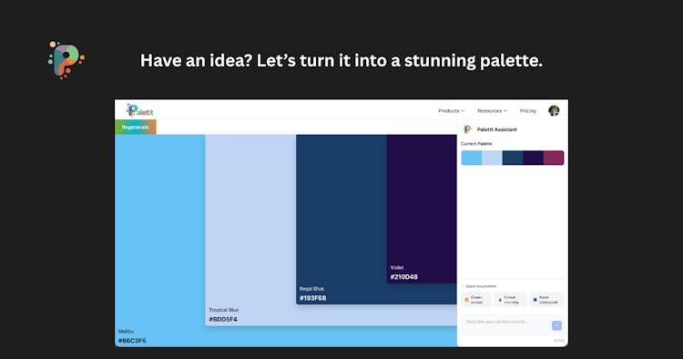 Palettt is your all-in-one color design companion. Whether you're building a brand, UI, or artwork, Palettt lets you instantly generate palettes, explore endless combinations, and save or share them with a single click.