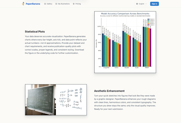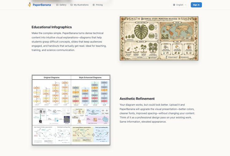Make the complex simple. PaperBanana turns dense technical content into intuitive visual explanations—diagrams that help students grasp difficult concepts, slides that keep audiences engaged, and handouts that actually get read. Ideal for teaching, training, and science communication.