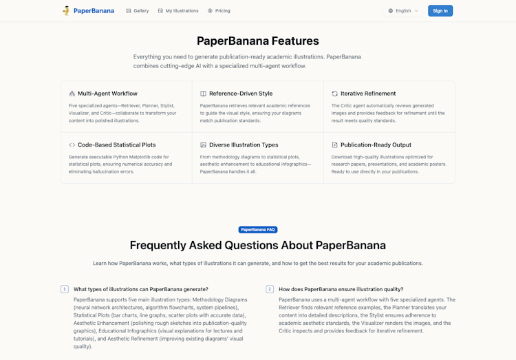 Everything you need to generate publication-ready academic illustrations. PaperBanana combines cutting-edge AI with a specialized multi-agent workflow.