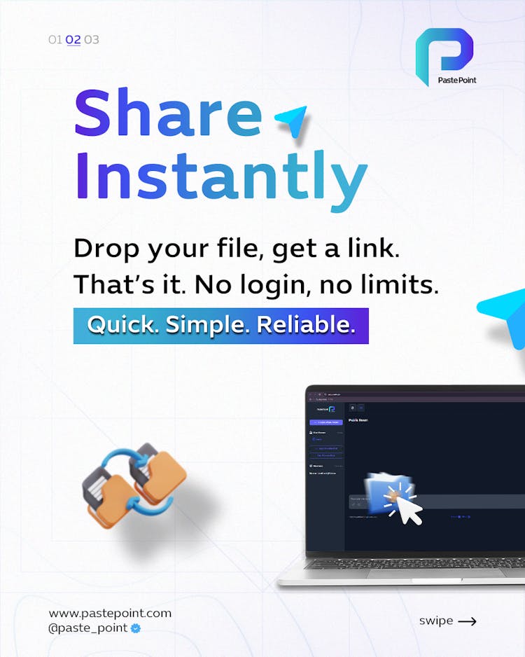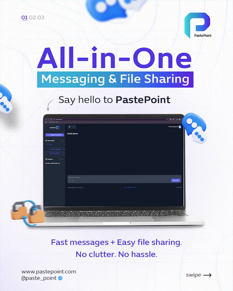 PastePoint is a local-first and public, peer-to-peer tool for secure file sharing and real-time messaging. No cloud, no storage limits — just fast, encrypted communication over WebSockets and WebRTC.