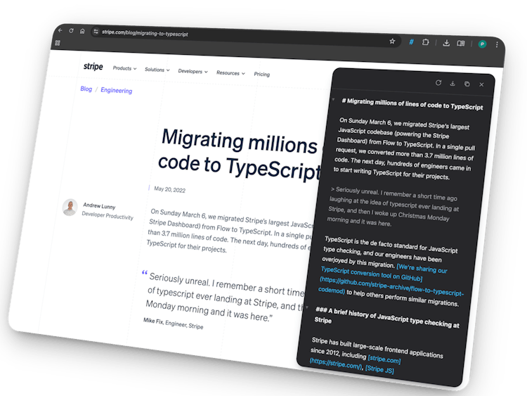 Convert any webpage into clean Markdown in one click. No login, no server, no tracking.