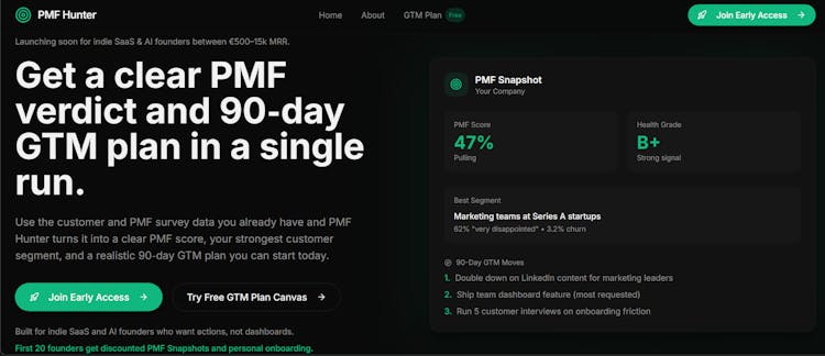 I’ve just opened a waitlist and would love early feedback from founders wrestling with PMF: you can join here and try the free GTM planning canvas - https://pmfhunter.com
