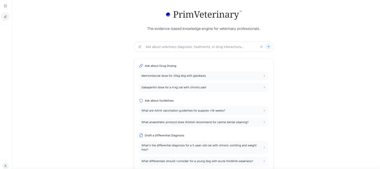 Designed for licensed veterinarians, PrimVeterinary provides a reliable, evidence-based research experience. Through AI assistance, it generates scientifically supported content and citations. The platform does not offer veterinary medical advice, diagnostic conclusions, or therapeutic recommendations and should not replace professional judgment.