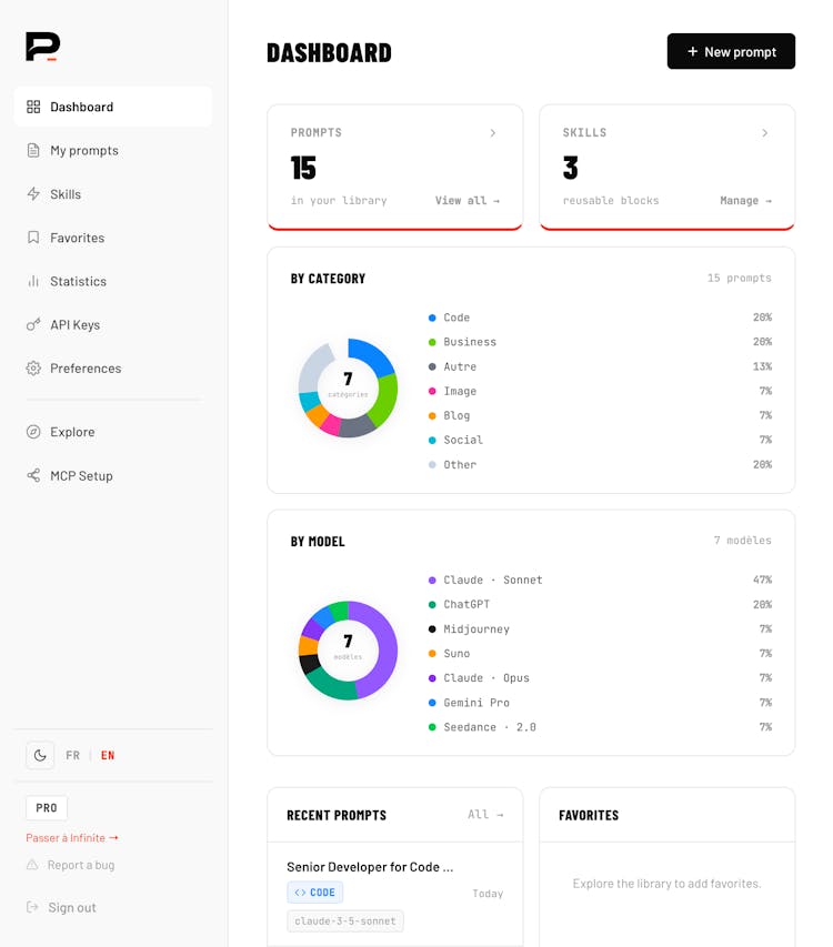 Prompted is a prompt library for AI power users. Save, organize, and reuse your best prompts across all your AI tools: Claude Code, Cursor, VS Code, and any MCP-compatible client )or through API). Prompts support variables ({{topic}}, {{tone}}, or [TOPIC], [TONE]) for flexible reuse. Browse a public library with community prompts and real LLM outputs tagged by model (Claude, GPT, Gemini, Nano Banana). Covers 12 categories: development, SEO, image generation, video, music, blog, and more.