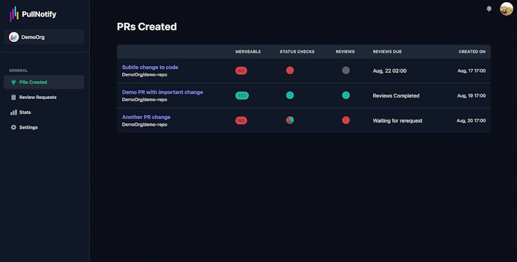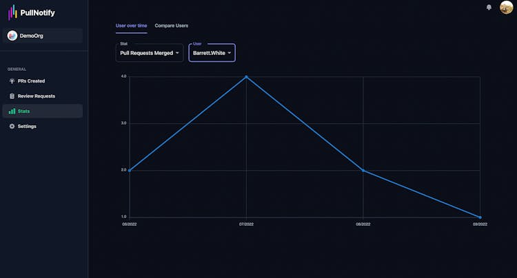 PullNotify improves upon GitHub's standard pull request view, presenting a streamlined display of your PRs and review requests. Stay updated with timely Slack notifications and delve deep into insightful analytics on reviews, commits, and contributors.
