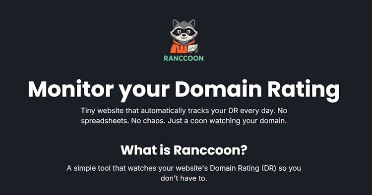 Automatic daily Domain Rating (DR) tracking with charts, milestones, alerts, and embeddable verified badges for indie makers and websites.