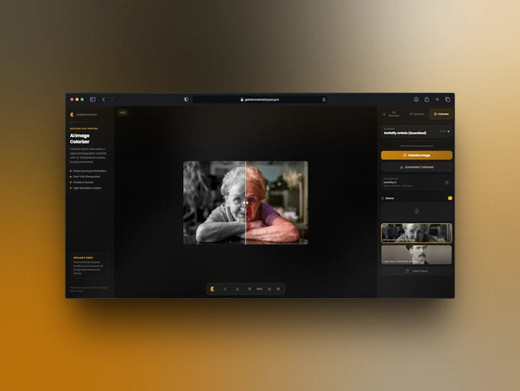 - AI-Powered Precision: High-quality background removal, colorization, and upscaling using state-of-the-art neural networks.