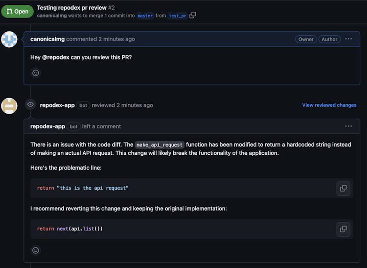 Repodex uses static code analysis to find errors in your codebase and then rewrites the code for you and turns it into a pull request. Spend less time maintaining old code and allow your team to focus on adding new features with Repodex!