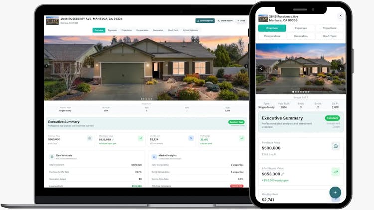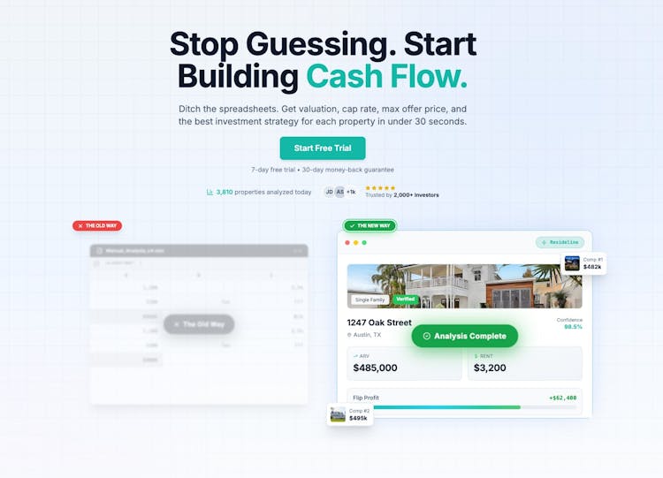 Resideline is an AI powered real estate analysis platform that helps investors quickly identify profitable residential opportunities. Using advanced AVMs, automated valuation models, Resideline estimates after repair value, market rent, and deal level returns so you can underwrite faster with more confidence. The platform continuously tracks active and recently sold listings to keep comps and pricing signals fresh, then recommends the best strategy for each property, long term rental, short term rental like Airbnb, or fix and flip. For high volume investors, Resideline can analyze up to 500 properties from a CSV in seconds, turning days of underwriting into minutes. Resideline also offers an API that lets partners and platforms integrate our valuations and rental insights directly into their own products and workflows.