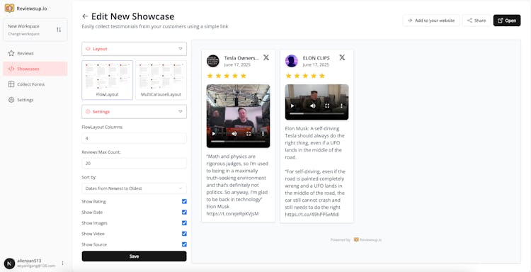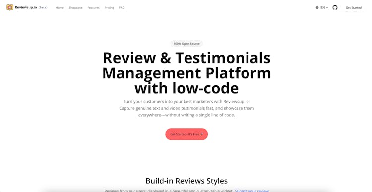 An open-source platform for managing reviews and testimonials. It includes built-in widgets and low-code tools that make it easy to collect and showcase social proof. Easily integrates into your project with JavaScript, React, or Vue components.